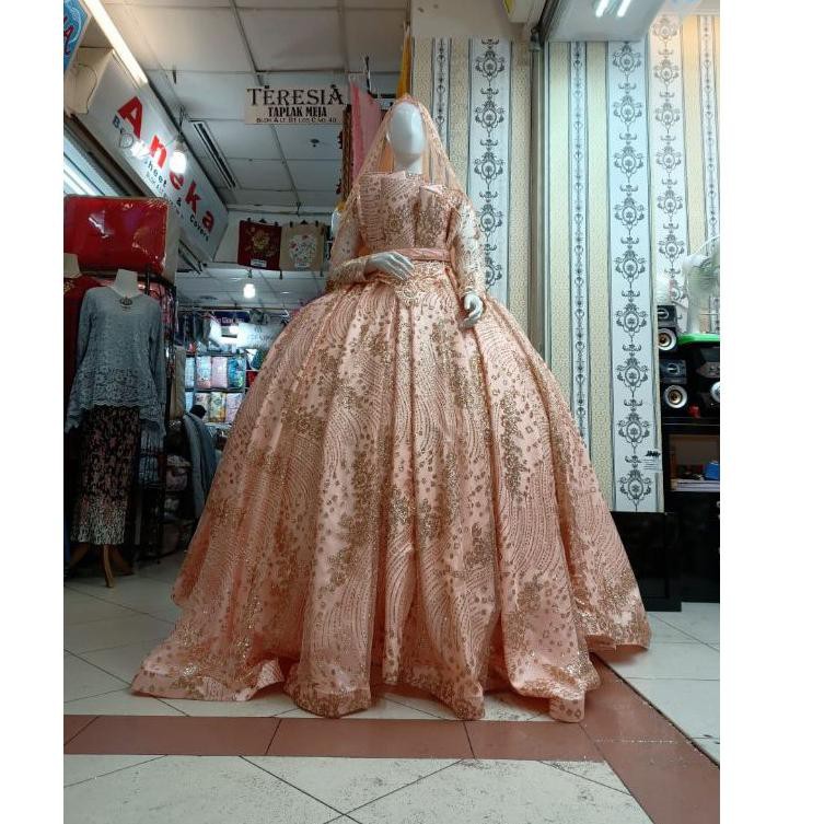 Beli gaun pengantin mekar, warna rose gold , bahan payet terbaru di shopee.